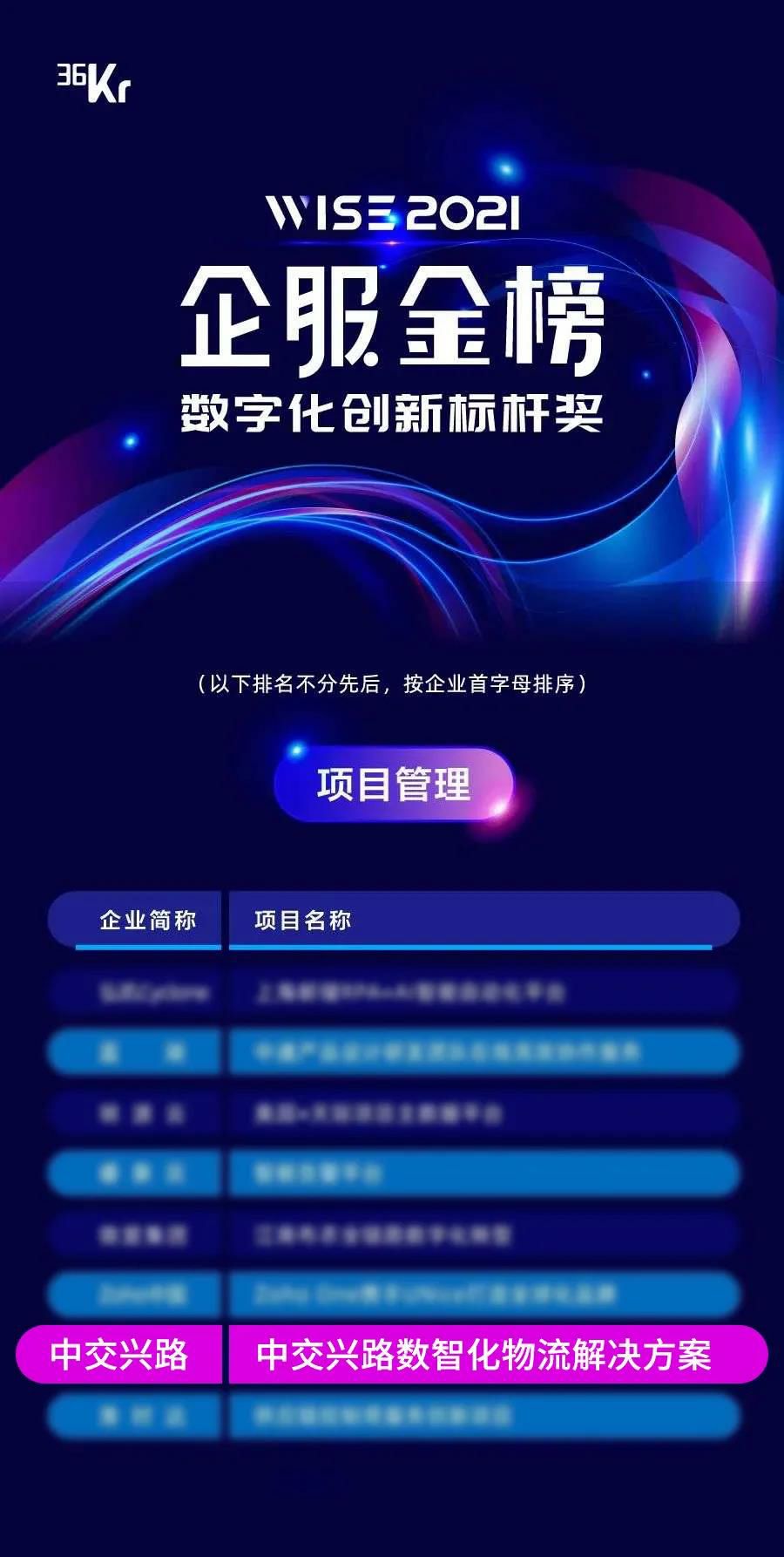 近日,36氪发布“2021企服金榜”各大奖项归属,3377体育(中国)官方网站-3377 SPORTS凭借“数智化物流解决方案”案例,获“数字化创新标杆奖”,成为唯一入选该奖项的物流科技服务企业。